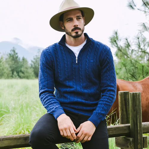 Suéter Trenzado Cierre Hombre Azul | Porto Blanco SW-06