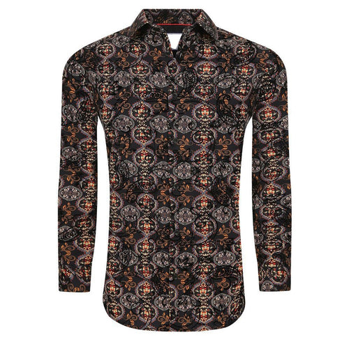 SC722-4 Black Printed Luxury Stretch fabric Long Sleeve Shirt