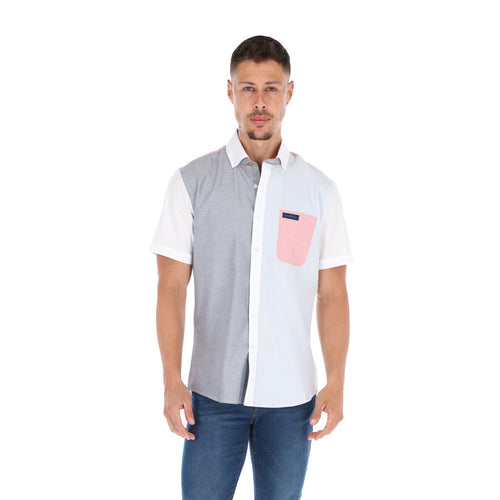 Men's Patchwork Short Sleeve Classic Button Down Shirt Gray, Blue, Pink & White | Porto Blanco LMC-2021