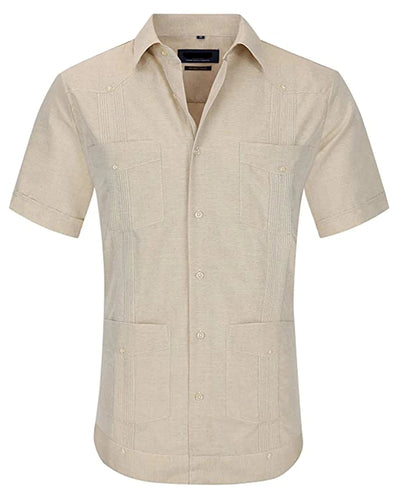 Khaki Guayabera Cuban Short Sleeve Shirt / GS565-4