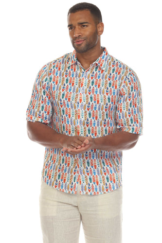Men's Casual Print Linen Shirt Short Sleeve Button Down | M-2041 Multi