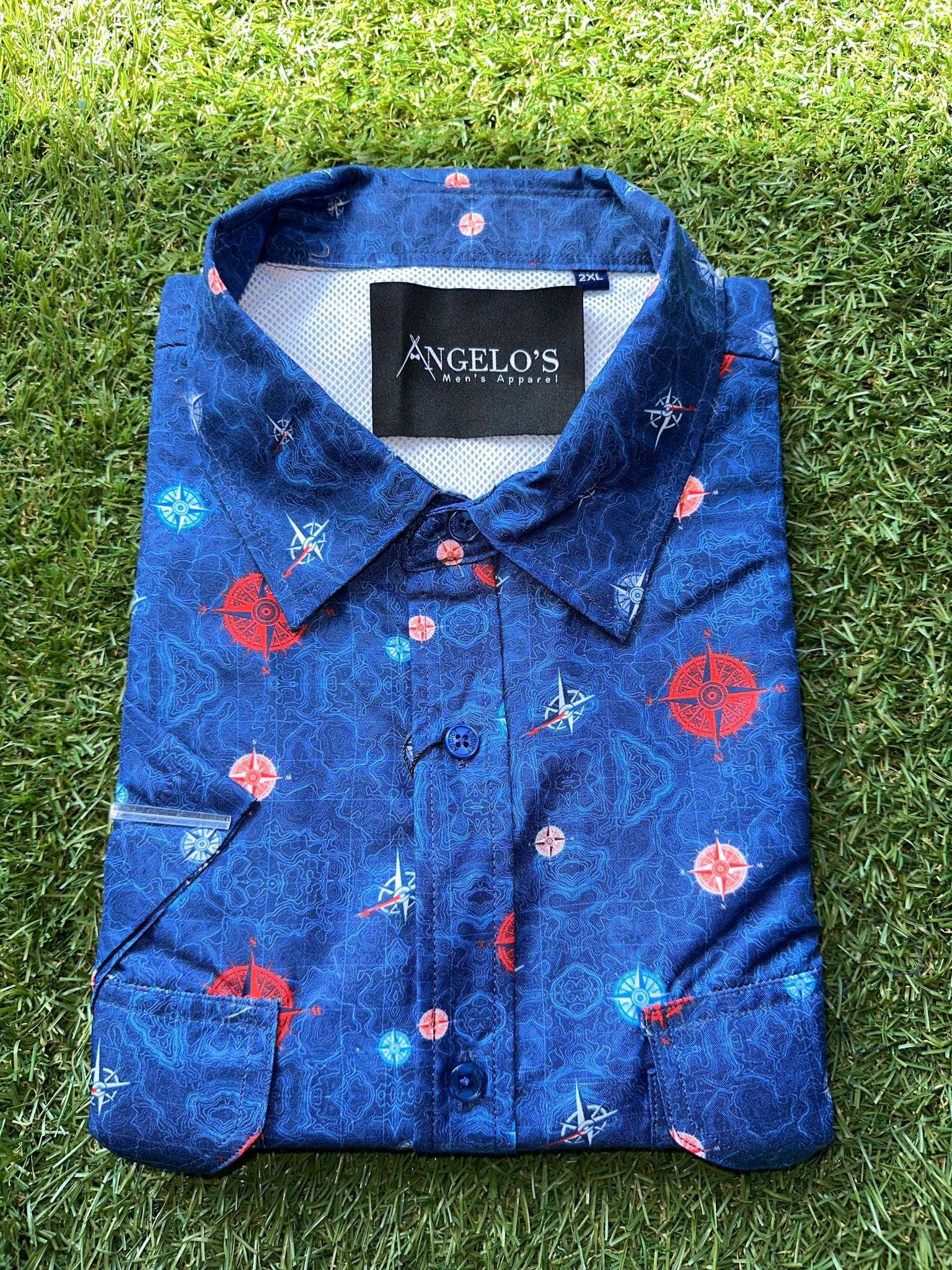 • Load image into Gallery viewer, Navy Compass Short Sleeve Shirt