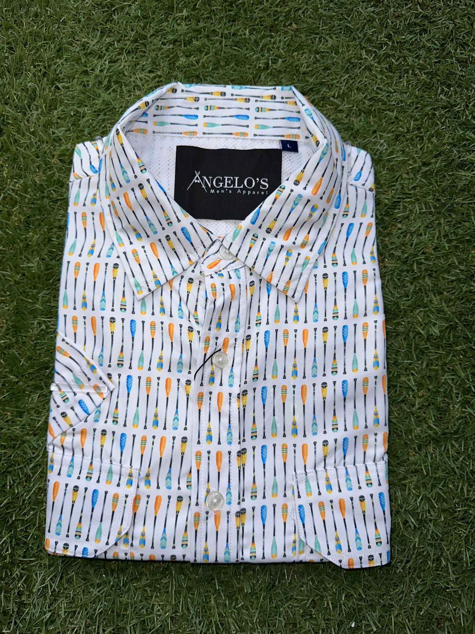 • Load image into Gallery viewer, White Paddle Short Sleeve Shirt