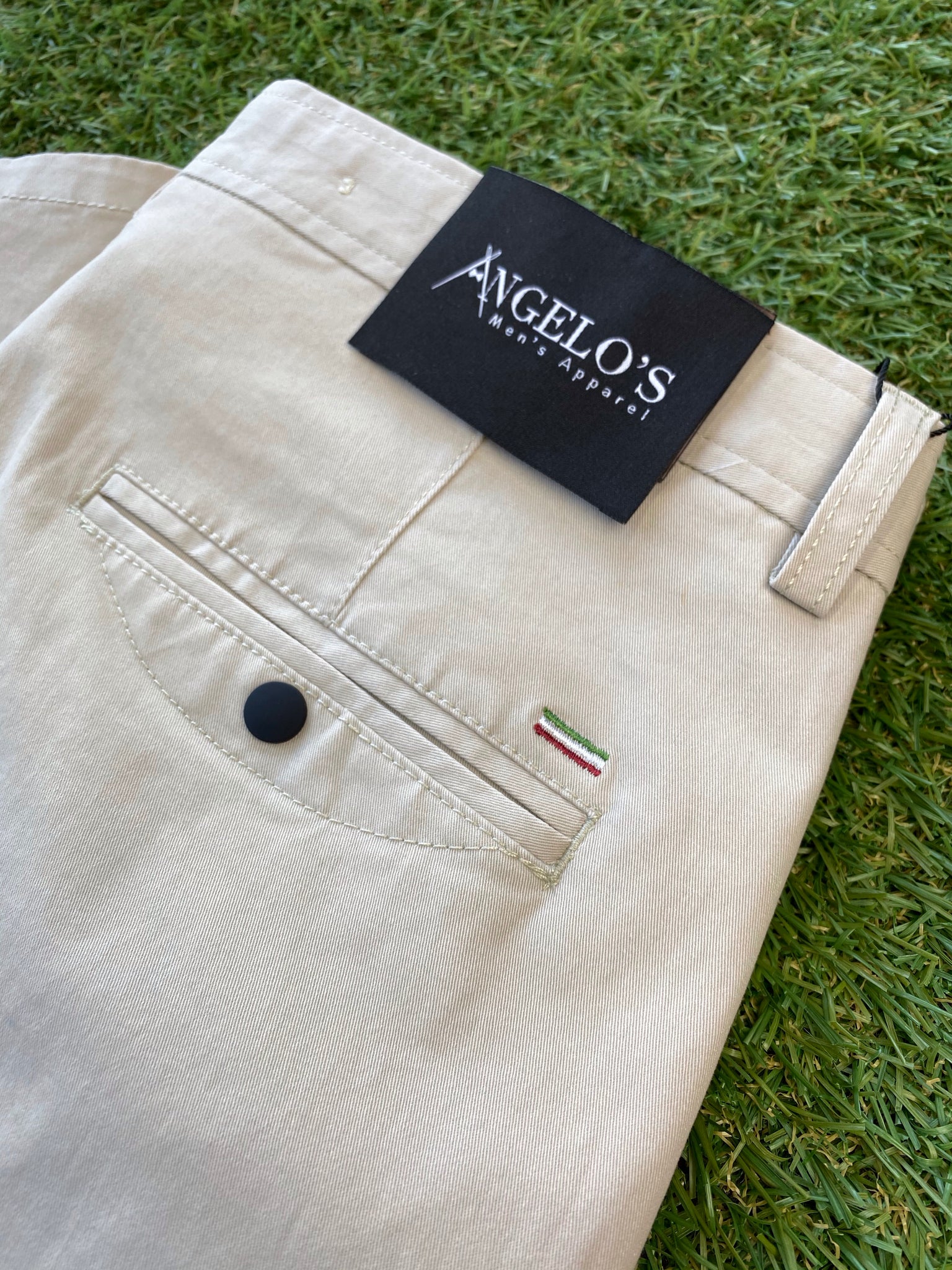 Perfectly slim-fit chino pants from Angelos Shop. Soft and stretchy cotton twill is cut in a classic skinny fit with a slightly tapered leg and a low rise lined waistband complete with a zip fly and button closure. Features a flat front with two angled pockets and a welted coin pocket, as well as two welted pockets at the back. Exclusively available at Angelos Men Boutique