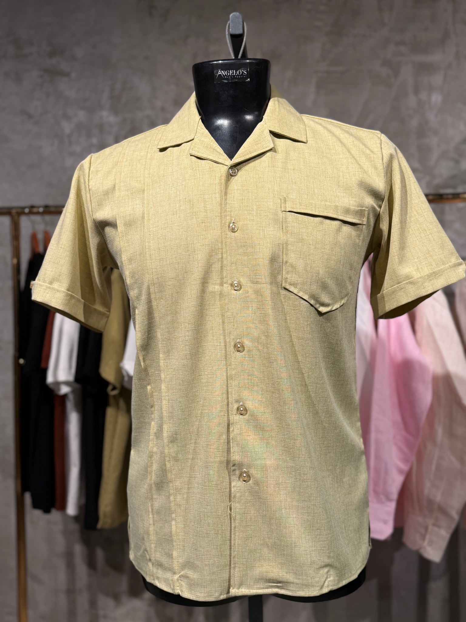 Camisa cubana clásica de manga corta, con un diseño retro de inspiración latina. Presenta frente limpio con un bolsillo, pliegues sutiles y una mezcla de algodón con elasticidad que brinda comodidad y un look pulido pero relajado. Ideal para climas cálidos, salidas casuales y uso diario.