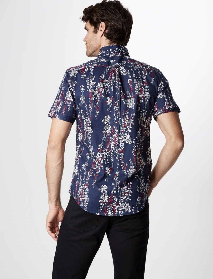 A floral print adds vintage charm to a neatly tailored button-down cut from crisp cotton. This short sleeve with signature 7DIAMONDS details; will elevate any outfit.