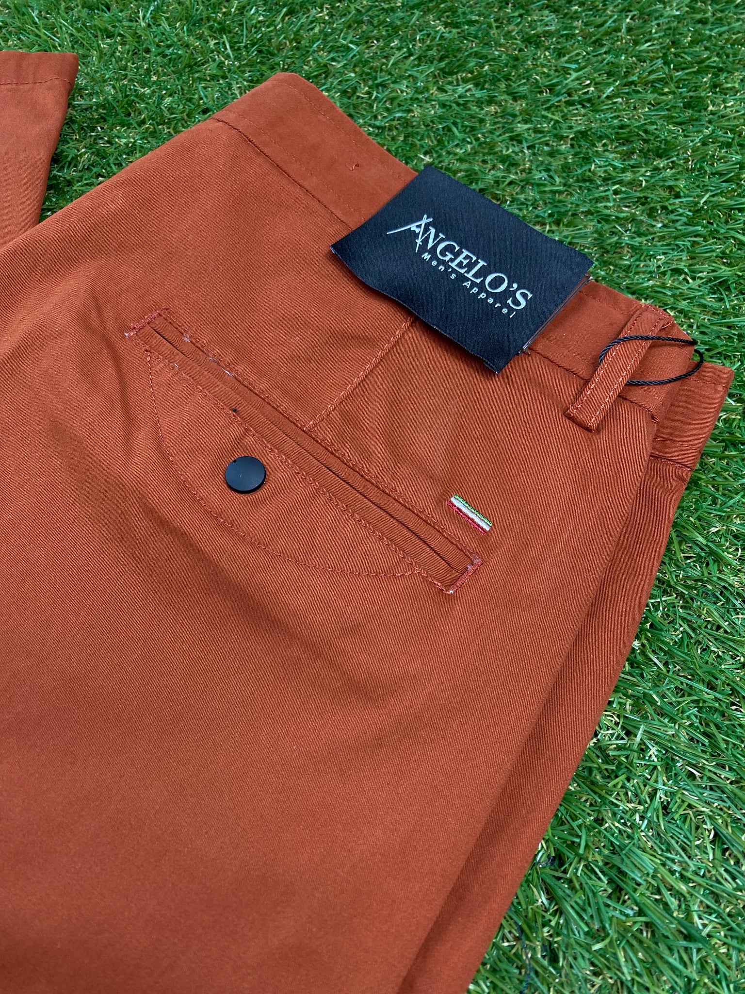 Perfectly slim-fit chino pants from Angelos Shop. Soft and stretchy cotton twill is cut in a classic skinny fit with a slightly tapered leg and a low rise lined waistband complete with a zip fly and button closure. Features a flat front with two angled pockets and a welted coin pocket, as well as two welted pockets at the back. Exclusively available at Angelos Men Boutique