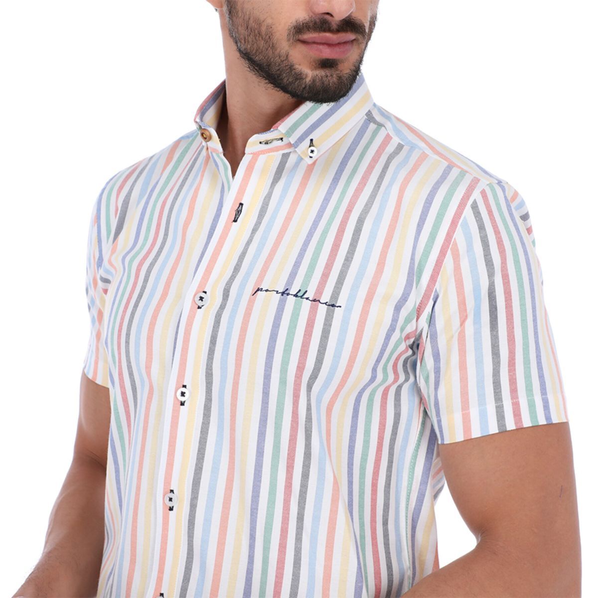 Men's Stripes Short Sleeve Button Down Shirt Multi Colored | Porto Blanco MC-1756