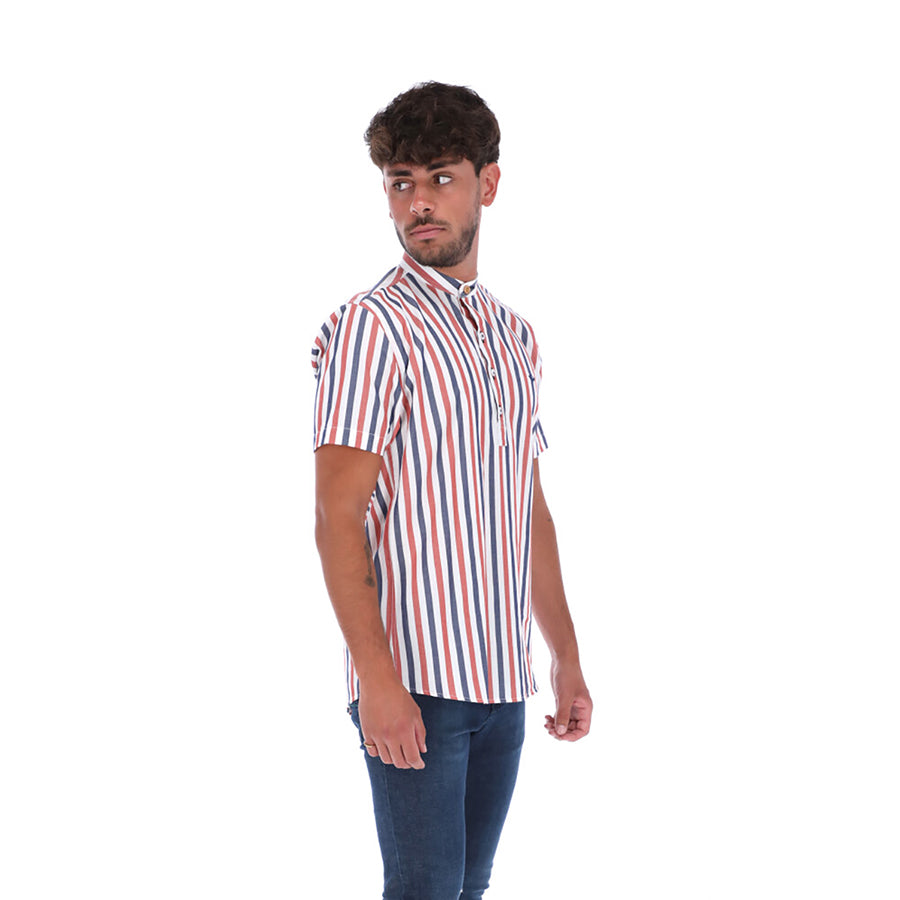 Special Edition Men's Short Sleeve Button Down Shirt Blue Red & White | Porto Blanco MCE-1754