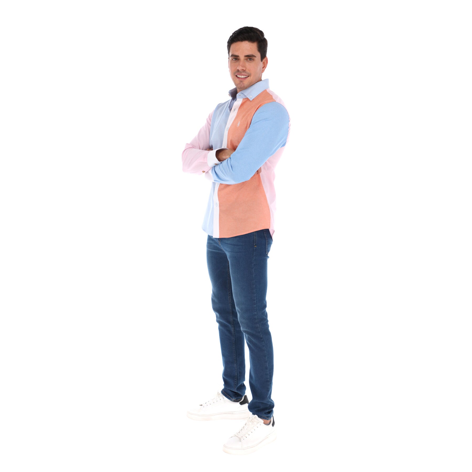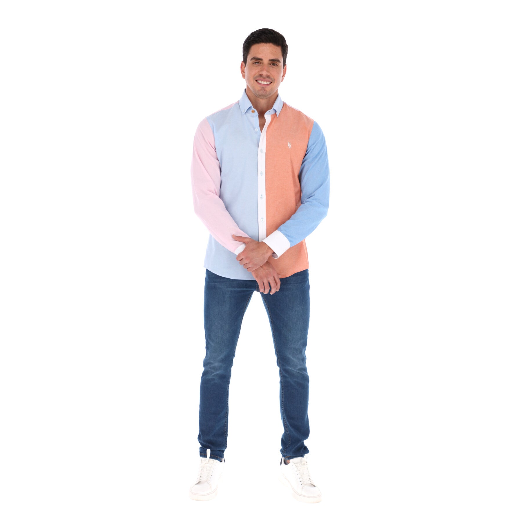 Porto Blanco Solid Long Sleeve Special Edition Button Down Shirt Terracotta, Pink & Blue | E-2034