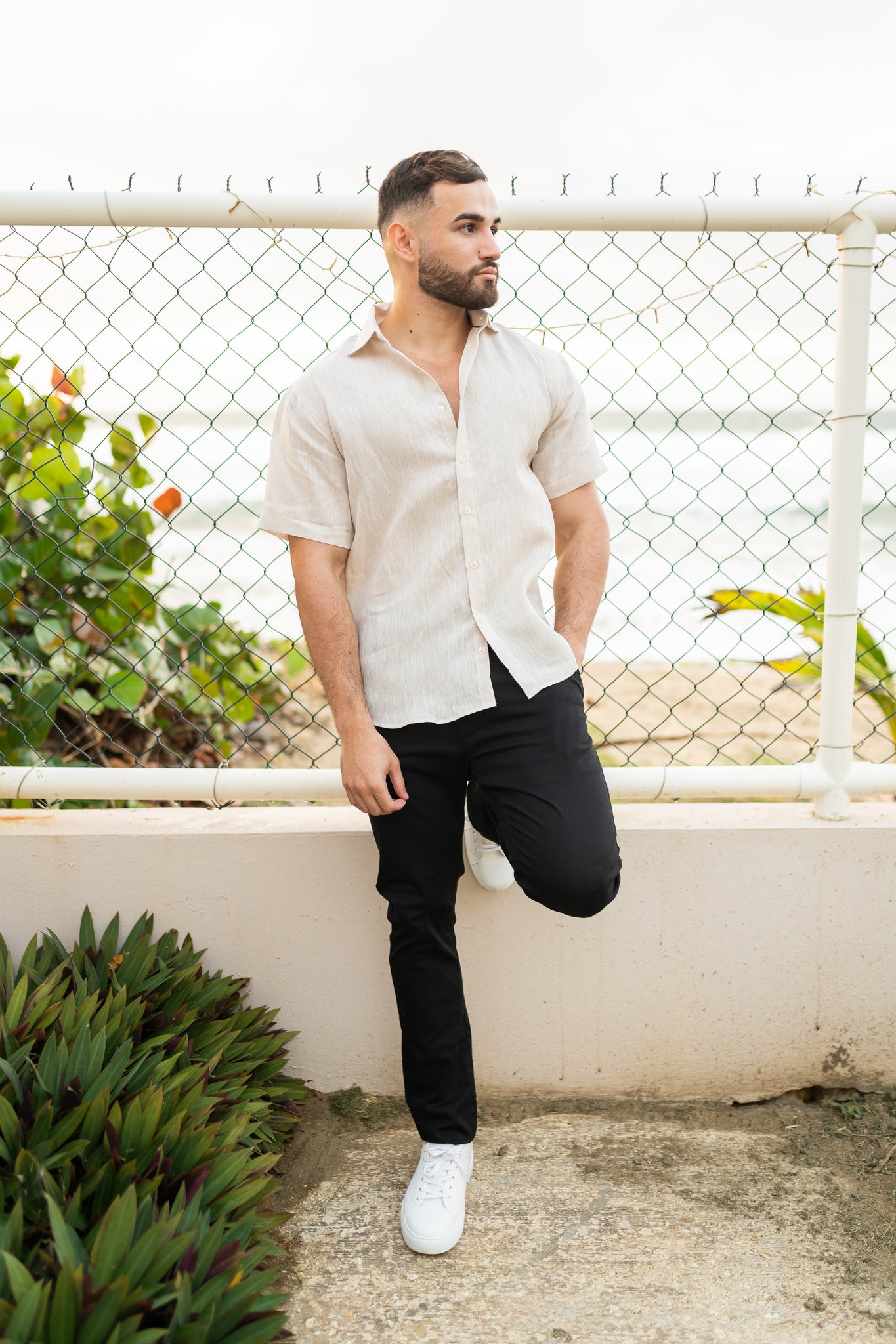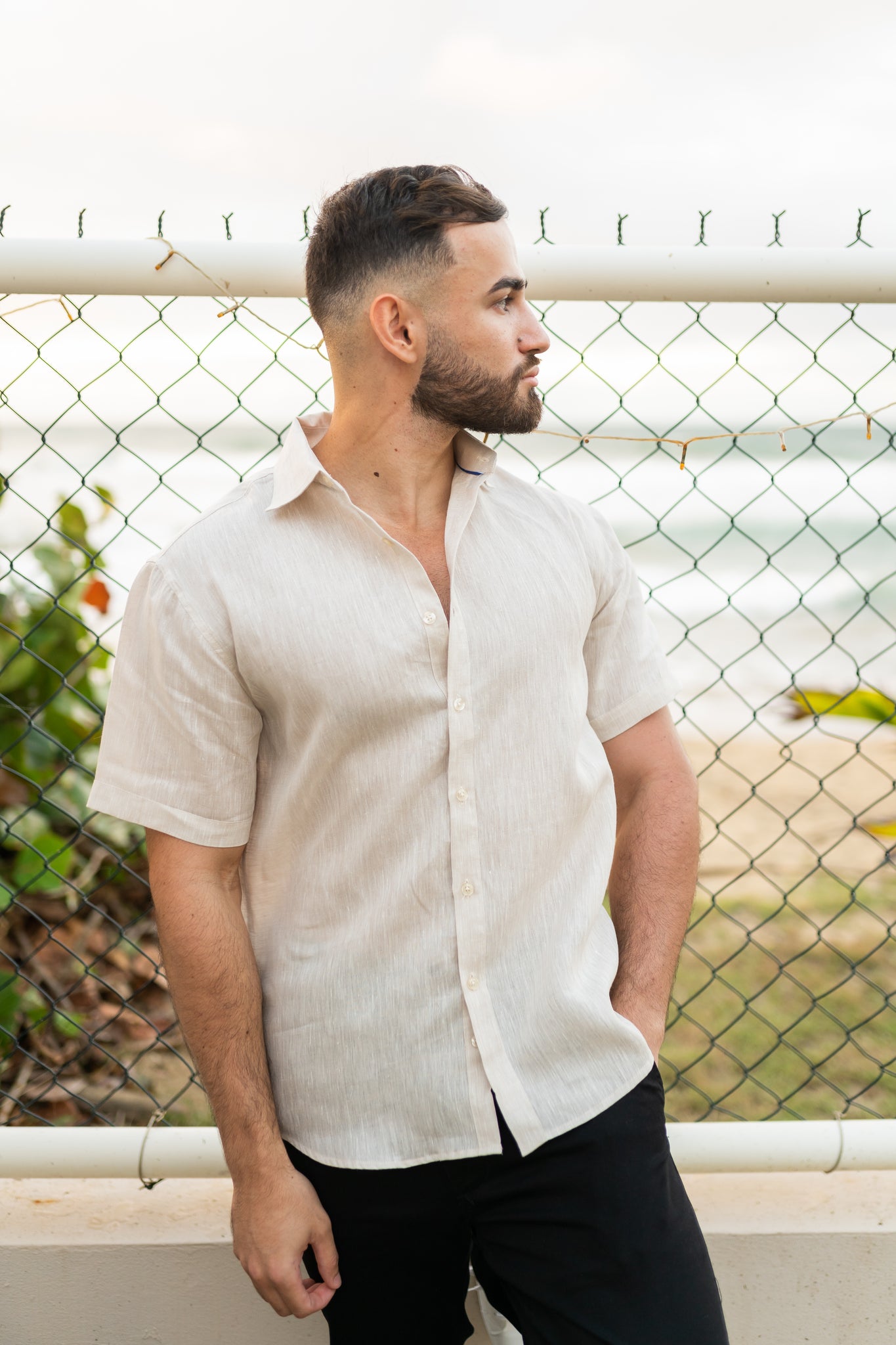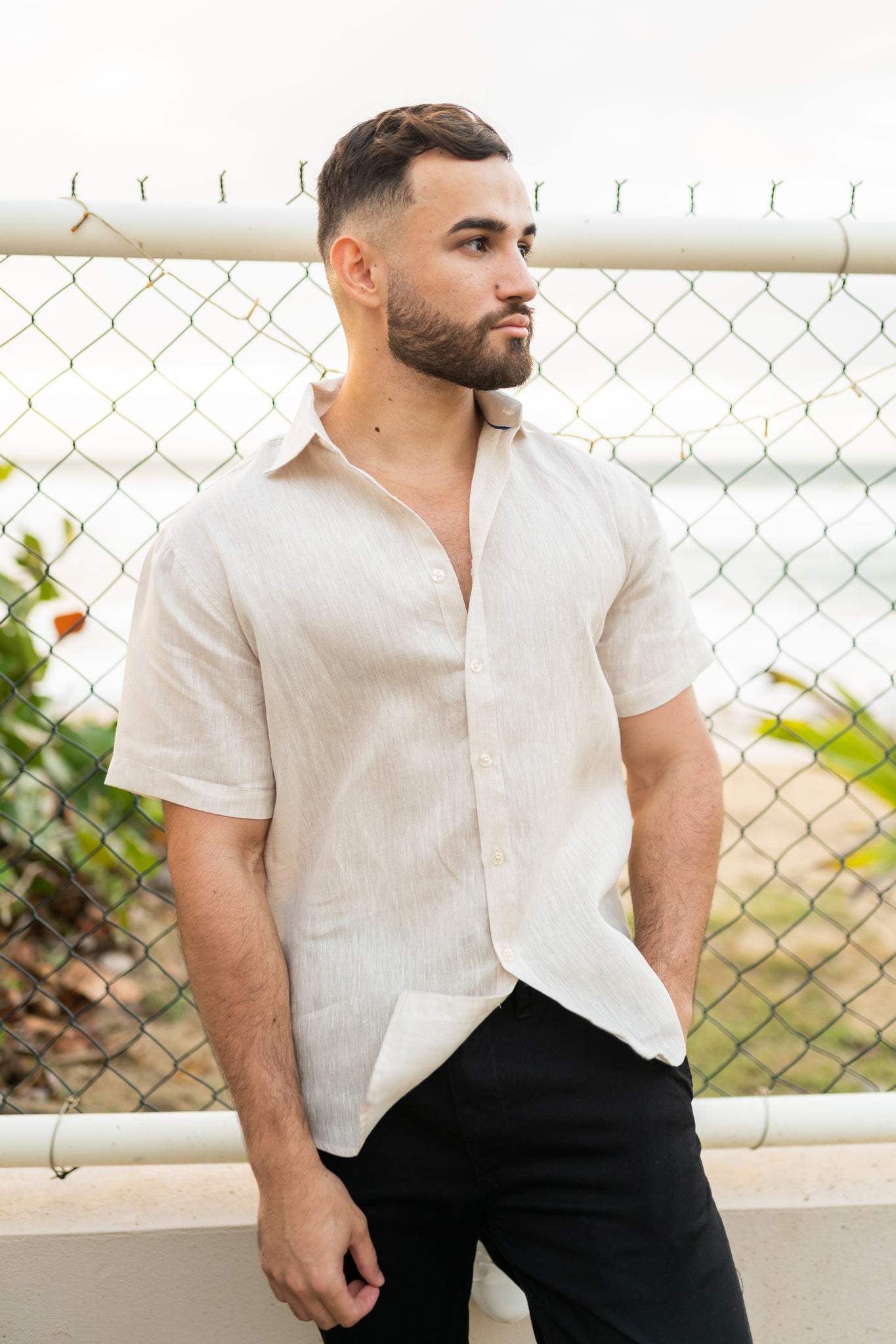 Mojito Men's Yarn Dye 100% Linen Guayabera Shirt Short Sleeve