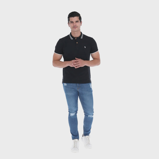Este clásico renovado se caracteriza por su cuello distintivo y una silueta pulida, haciendo de la playera polo una elección versátil para una variedad de entornos, desde el campo de golf hasta una reunión casual o un evento social.