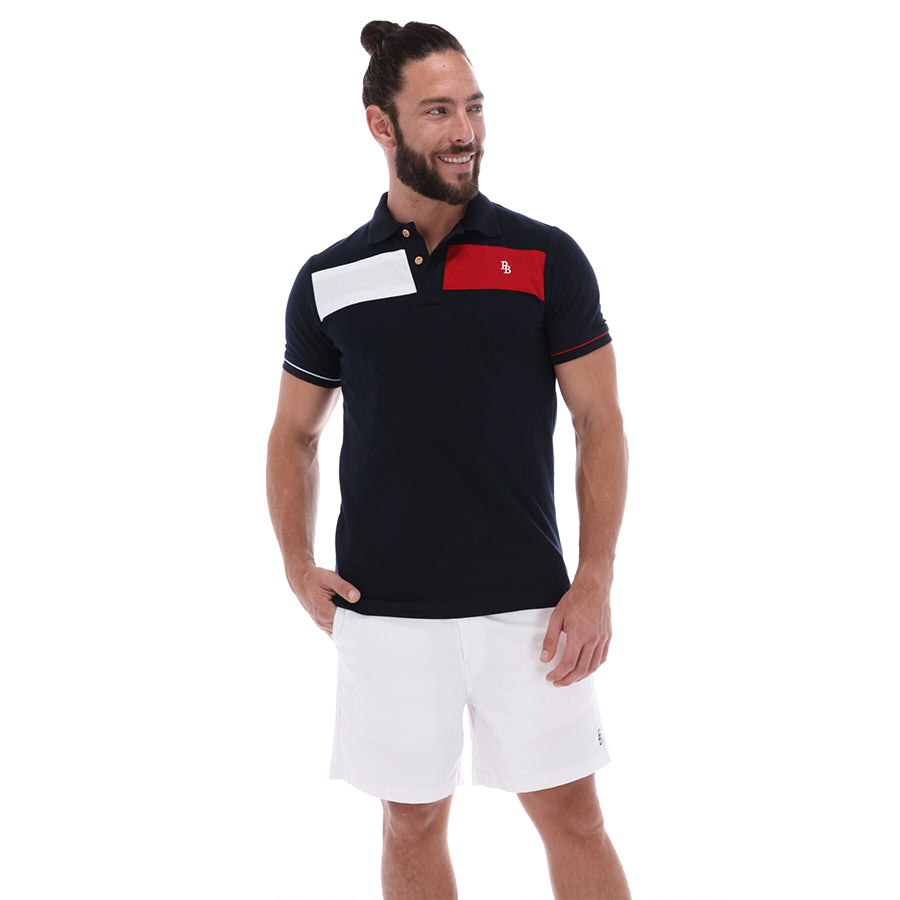 PL-1506 Men's Patchwork Short Sleeve Polo Shirt Blue Red & White
