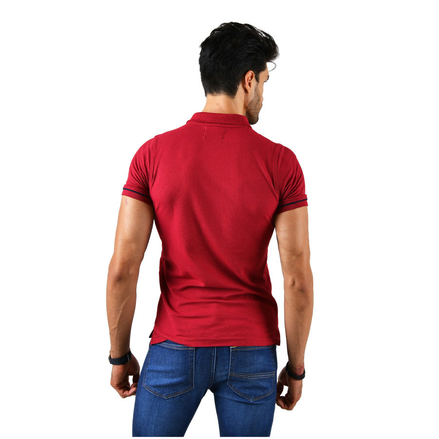 PL-948 Men's Solid Short Sleeve Polo Shirt Burgundy & Blue