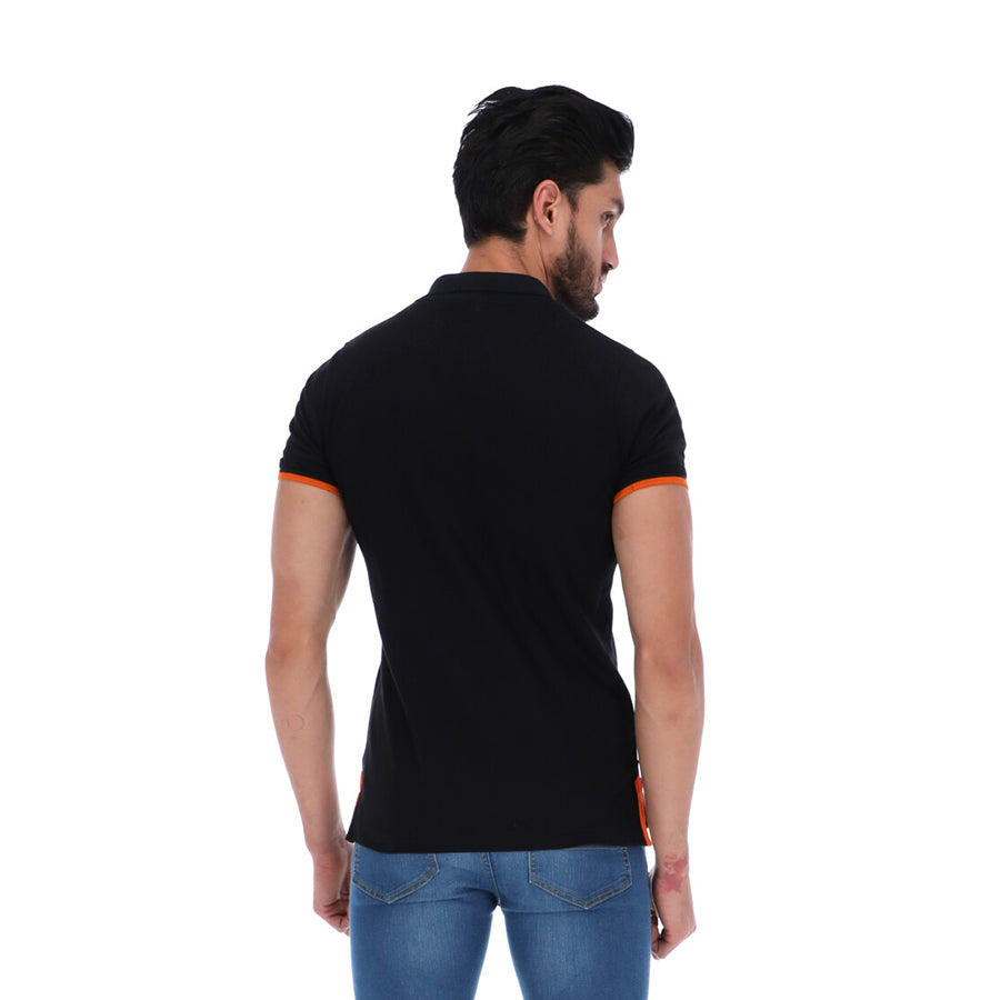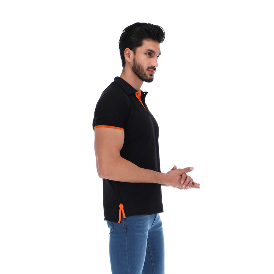 PLE-1725 Men's Solid Short Sleeve Polo Shirt Black & Orange