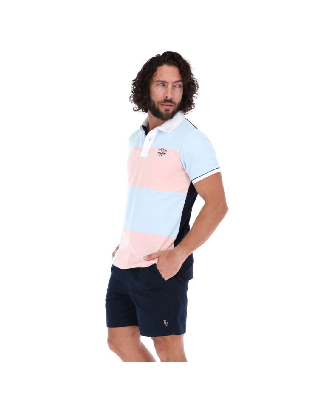 PLL-1521 Men's Patchwork Short Sleeve Polo Shirt Blue Pink & Green