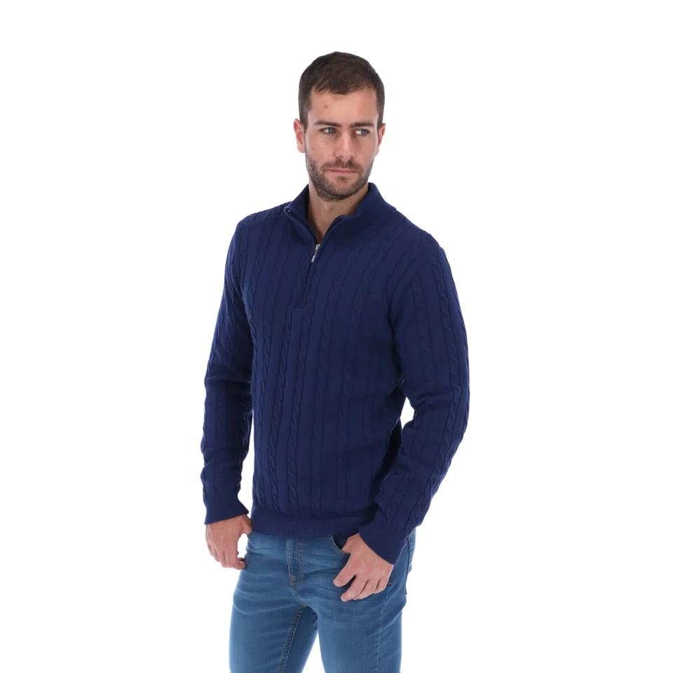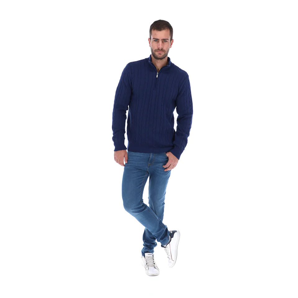 Suéter Trenzado Cierre Hombre Azul | Porto Blanco SW-06